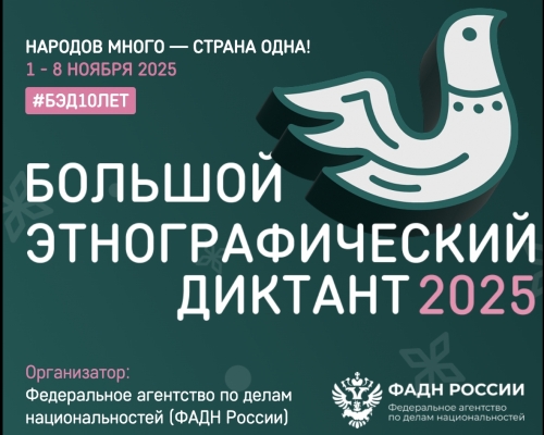 С 1 по 8 ноября 2025 г. во всех субъектах Российской Федерации и зарубежных странах пройдет Юбилейная X Всероссийская просветительская акция «Большой этнографический диктант».