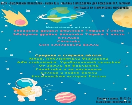В России ежегодно совершаются десятки открытий, которые становятся достоянием всего человечества. Полнокупольная программа расскажет о достижениях отечественной науки, промышленности и космической отрасли. Вы узнаете о первых космических телескопах СССР, о современных обсерваториях, работающих на орбите, и о планируемых запусках в обозримом будущем. Программа предназначена для широкого круга зрителей.