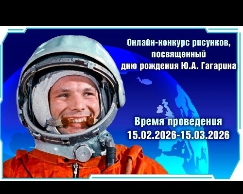 Онлайн-конкурс рисунков, посвященный дню рождения Ю.А. Гагарина (с 15.02 по 15.03.2026)