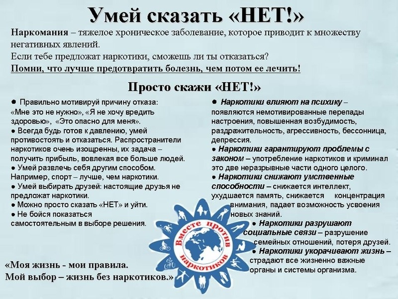 Информация о вреде и последствиях потребления наркотических средств, а также уголовной ответственности!