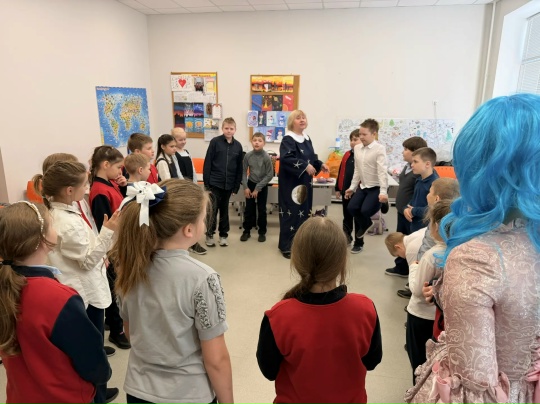 22 апреля в МБОУ "СШ" 28 сотрудниками МБУК "Смоленский Планетарий" имени Ю.А.Гагарина была проведена интерактивная программа "Путешествие Незнайки на Луну".